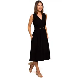 Rozkošné šaty s překrývajícím se horním dílem a rozšířeným spodním dílem, který sahá pod kolena. Šaty jsou bez podšívky.