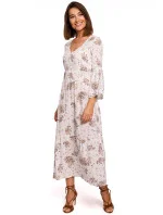 Romantické boho maxi šaty s krajkovými vsadkami na rukávech a ramenou a mírně rozšířenou sukní s volánem. Šaty jsou bez podšívky.
