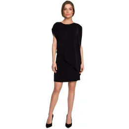 Tyto šaty mají nekonečný seznam výhod. Pohodlný rovný střih a délka mírně nad kolena. Kromě toho byly navrženy ve vrstvách: horní, asymetrická vrstva sahá až k linii boků, takže šaty padnou každé postavě. Šaty se zapínají na krytý zip.