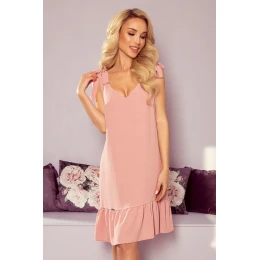 Rosita - šaty s mašlemi na ramenou a volánem. Šaty v barvě pudrově růžové. Vyrobeno v Polsku. Značka numoco.