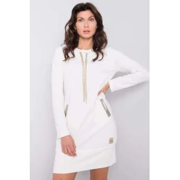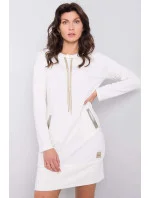 Bavlněné šaty s dlouhými rukávy v barvě ecru. Posuvné kapsy na bocích. Ideální pro každodenní nošení.