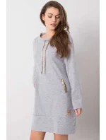 Bavlněné šaty s dlouhými rukávy v šedé barvě. Posuvné kapsy na bocích. Ideální pro každodenní nošení.