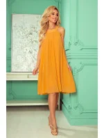 Šifonové šaty s páskem a zavazováním na zádech. Šaty v medové barvě. Značka numoco. Vyrobeno v Polsku.