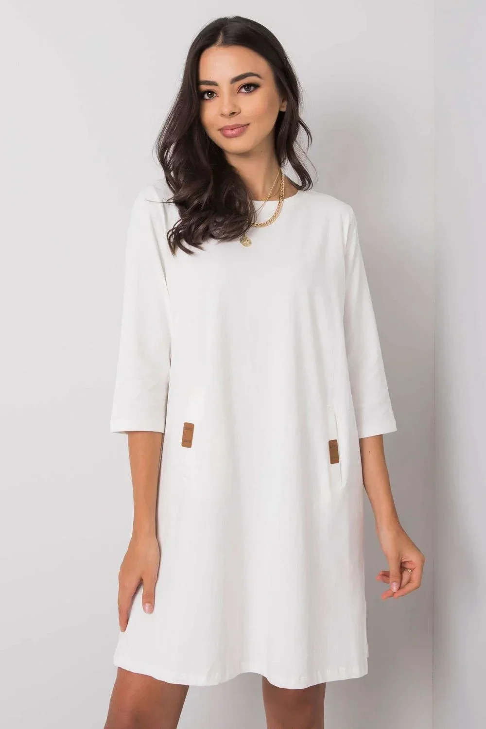 Šaty s 3/4 rukávy a kapsami na přední straně. Šaty s volným střihem. Ideální pro mnoho příležitostí.