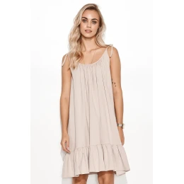 Letní šaty z teplákového úpletu příjemného na dotek. Šaty mají tenká ramínka zakončená romantickým zavazováním. Dívčí styl šatů doplňuje volánek všitý do jejich spodní části. Šaty jsou velmi pohodlné a ležérní. Lze je nosit volně, svázané páskem, řemínky nebo letním šátkem. Oblečte si ji k módním kovbojským botám nebo oblíbeným sportovním botám. V každém případě budou šaty vypadat skvěle. Noste ho tak, jak se vám líbí a jak se cítíte. Móda je přece o sebevyjádření.