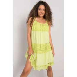 Šaty bez ramínek ve volném střihu. Přední díl s ozdobnými krajkovými vsadkami. Zpět hladce. Ideální na léto.