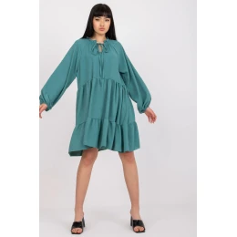 Šaty rozšířeného střihu s dlouhými rukávy. Vázaný výstřih a volánek ve spodní části. Ideální pro mnoho příležitostí.