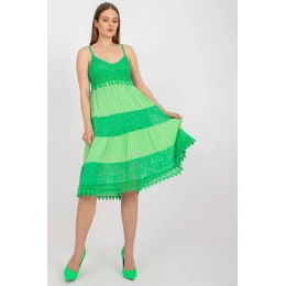 Letní šaty s rozšířeným střihem a ramínky. Šaty jsou podšité a mají srdíčkový výstřih. Šaty s ozdobnou krajkou a prolamovaným vzorem.