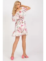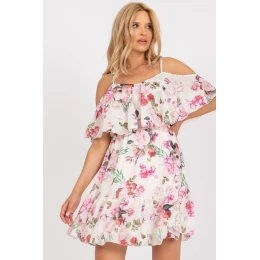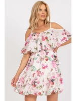 Šaty z květinové látky, na ramínka s krátkými rukávy. Šaty rozšířeného střihu s volánem. Ideální pro mnoho příležitostí.