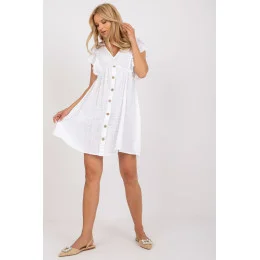 Letní šaty s rozšířeným střihem, zapínání na knoflíky na přední straně. Šaty s krátkými rukávy v podobě volánku, srdíčkový výstřih. Ideální pro každodenní použití a další.