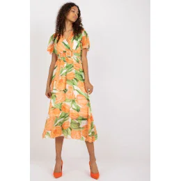 Letní šaty s krátkými rukávy v podobě volánků. Šaty s podšívkou. Obálkový výstřih, pásek v pase, rozšířená spodní část. Ideální pro mnoho příležitostí.