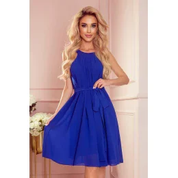 Šifonové šaty s páskem a zavazováním na zádech. Šaty v chrpově modré barvě. Značka numoco. Vyrobeno v Polsku.