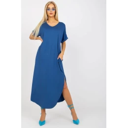 Šaty s krátkými rukávy a kapsami na bocích. Zaoblený lem s rozparky.