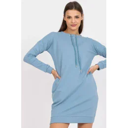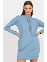 Teplákové šaty s dlouhými rukávy, kulatým výstřihem a páskem na zavázání. Šaty mají boční kapsy.