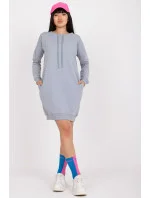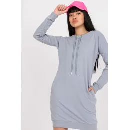 Teplákové šaty s dlouhými rukávy, kulatým výstřihem a páskem na zavázání. Šaty mají boční kapsy.