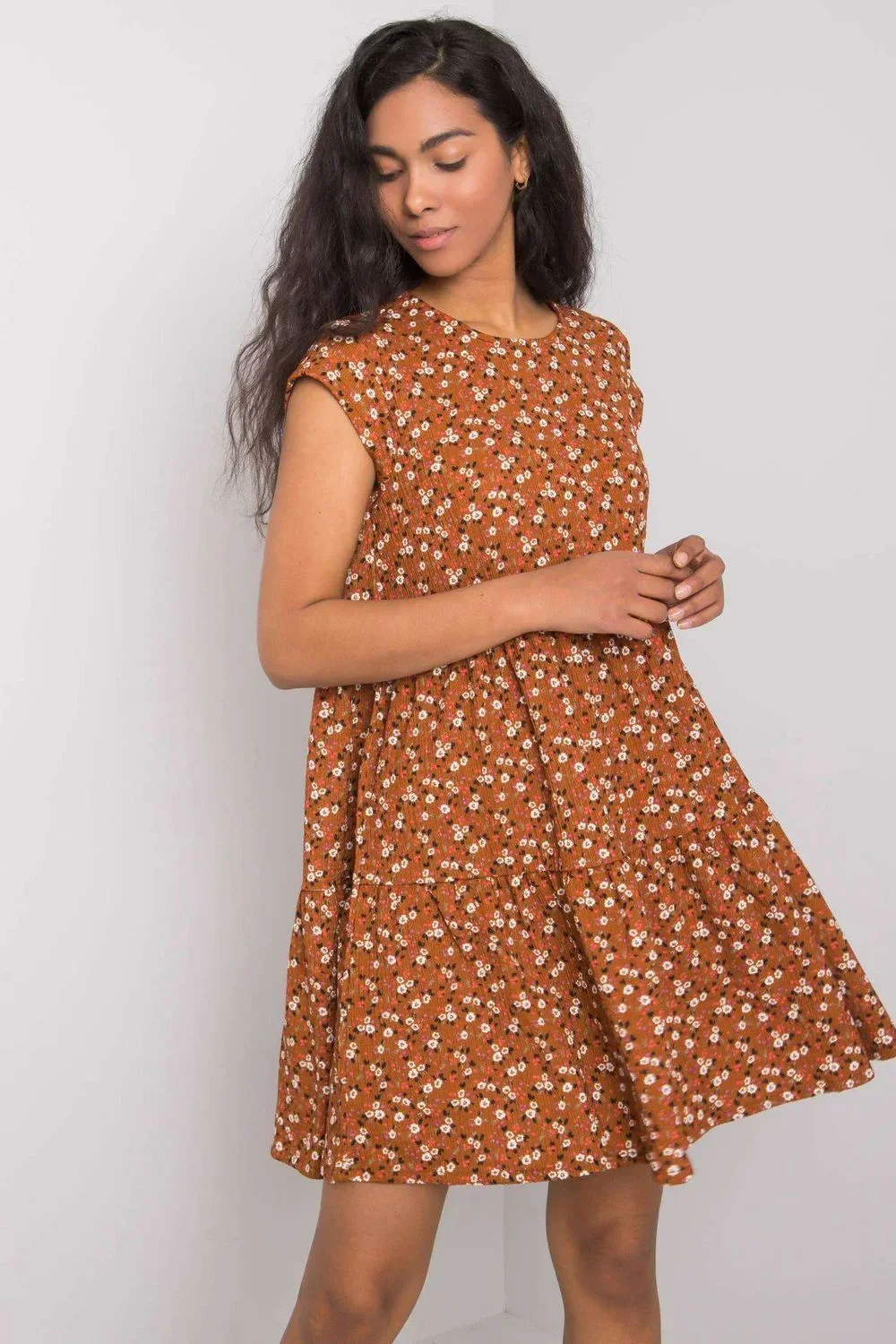 Volné šaty s krátkými rukávy a kulatým výstřihem. Hluboký výstřih na zádech se zavazováním. Ideální pro každodenní nošení i mimo něj.