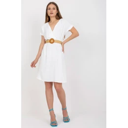 Šaty s obálkovou přední částí a krátkými rukávy. Spodní část šatů je mírně rozšířená. Součástí balení je pletený pásek. Ideální styling pro mnoho příležitostí.