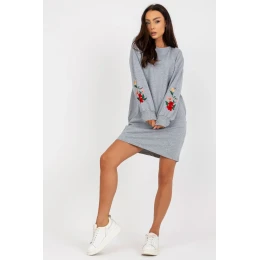Mikinové šaty s dlouhými rukávy a kulatým výstřihem. Rukávy zdobí zajímavá výšivka, na bocích jsou kapsy.