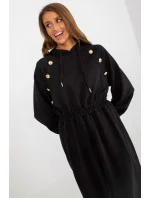 Mikinové šaty s dlouhými rukávy a kapucí. Elastický pas, ozdobné knoflíky na přední straně. Každodenní nabídka.