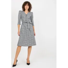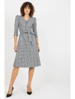 Kostkované šaty na zip se zavazováním v pase. Šaty s 3/4 rukávy a kapsami.