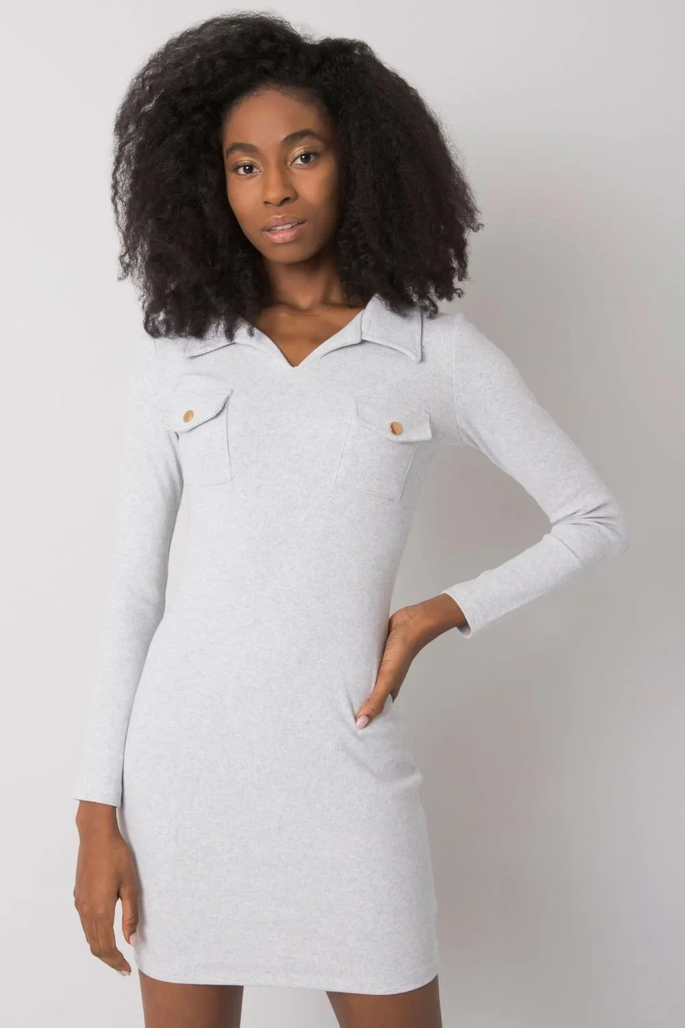 Šaty tužkového střihu z žebrované látky. Šaty s dlouhými rukávy a výstřihem do V.