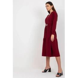 Šaty ležérního střihu s dlouhými rukávy a výstřihem do V. Šaty s volánkovým lemem a páskem pro doplnění vzhledu. Ideální pro každodenní nošení i mimo něj.
