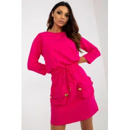 Mikinové šaty s 3/4 rukávy a kulatým výstřihem. Šaty se zavazovacími ramínky a kapsami.