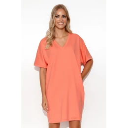 Mimořádně ležérní, minimalistické mikinové kimonové šaty. Jejich délka zdůrazňuje nohy, takže se skvěle hodí k botám. Drzý výstřih odhaluje klíční kosti a vytváří prostor pro krásné šperky. Na bocích jsou nakládané kapsy. Šaty umožňují volnost pohybu. Dámy s postavou typu jablko se v nich budou cítit skvěle. Šaty maskují oblast břicha a opticky prodlužují krk. Krátké kimonové rukávy zabraňují odhalování spodního prádla. Díky tomu působí tepláky žensky a elegantně.