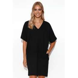 Mimořádně ležérní, minimalistické mikinové kimonové šaty. Jejich délka zdůrazňuje nohy, takže se skvěle hodí k botám. Drzý výstřih odhaluje klíční kosti a vytváří prostor pro krásné šperky. Na bocích jsou nakládané kapsy. Šaty umožňují volnost pohybu. Dámy s postavou typu jablko se v nich budou cítit skvěle. Šaty maskují oblast břicha a opticky prodlužují krk. Krátké kimonové rukávy zabraňují odhalování spodního prádla. Díky tomu působí tepláky žensky a elegantně.