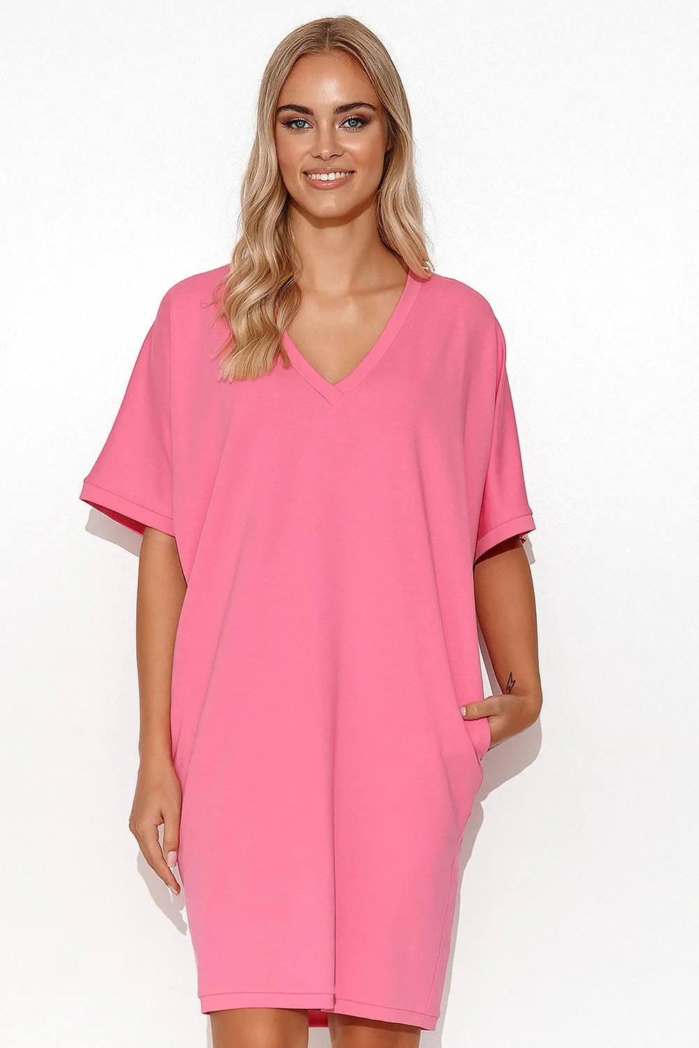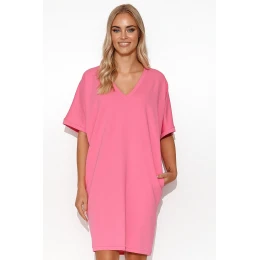Mimořádně ležérní, minimalistické mikinové kimonové šaty. Jejich délka zdůrazňuje nohy, takže se skvěle hodí k botám. Drzý výstřih odhaluje klíční kosti a vytváří prostor pro krásné šperky. Na bocích jsou nakládané kapsy. Šaty umožňují volnost pohybu. Dámy s postavou typu jablko se v nich budou cítit skvěle. Šaty maskují oblast břicha a opticky prodlužují krk. Krátké kimonové rukávy zabraňují odhalování spodního prádla. Díky tomu působí tepláky žensky a elegantně.