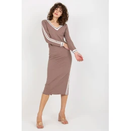 Šaty tužkového střihu s dlouhými rukávy a výstřihem do V. Šaty zdobí lemování v kontrastní barvě.