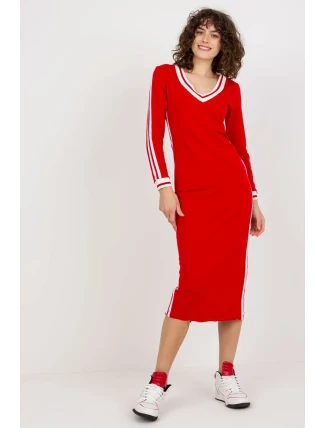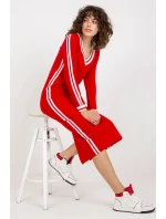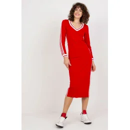 Šaty tužkového střihu s dlouhými rukávy a výstřihem do V. Šaty zdobí lemování v kontrastní barvě.