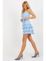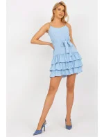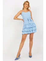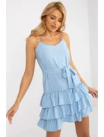 Mini šaty s řetízkovými ramínky, srdíčkovým výstřihem a zavazováním v pase. Spodní část šatů se třemi volánky.