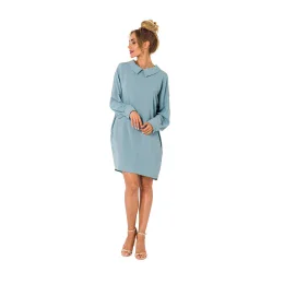 Tunikové šaty s límečkem a výstřihem na zádech zdobeným řetízkem. Šaty s dlouhými rukávy a volným střihem.