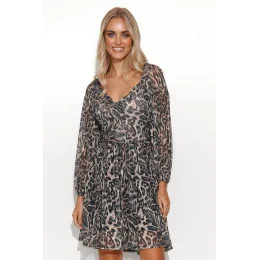Vzdušné šaty s extrémně dívčím střihem. Mají dlouhé, lehce nařasené rukávy. Vpředu je vidět poměrně velký výstřih, látka je na prsou nabraná. Uprostřed je našitý kousek látky, který imituje mašli. Na zadní straně šatů je zavazování spolu se šňůrkou. Ačkoli jsou záda viditelná, součástí šatů je další pruh látky, který zakrývá spodní prádlo. Díky tomu můžete k této kreaci nosit podprsenku. To znamená, že tento dívčí střih šatů je určen i pro dámy s větším poprsím. V linii pasu je rovněž přítomna stahovací guma. Spodní část šatů je ušitá z pevného materiálu. Horní část je naopak ze vzorované síťoviny, která je k dispozici ve třech variantách lišících se barvou a motivem.