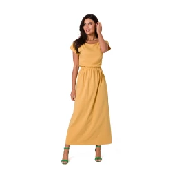 Pohodlné bavlněné maxi šaty s výstřihem mírně spadajícím přes jedno rameno a elastickým pasem.