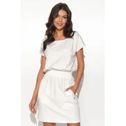 Tyto krásné šaty z lehkého teplákového úpletu jsou skutečným klenotem vašeho letního šatníku. Krátké rukávy a kulatý výstřih podtrhnou váš ležérní styl, zatímco elastický pas dodá vaší postavě tvar. Díky krátké délce šatů se budete v teplých dnech cítit volně a nenuceně. Pletenina mikiny je měkká a příjemná na dotek, což vám zajistí pohodlné nošení a správné větrání. Tato kreace je pro vás, pokud hledáte módní a pohodlnou variantu pro každodenní nošení i do práce. Budete v ní vypadat úchvatně a zároveň se budete cítit ležérně a pohodlně. Je to kousek, který si zamilujete a který obohatí váš šatník o další mimořádně ženský kousek.