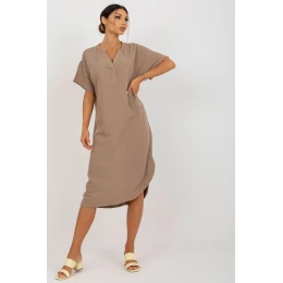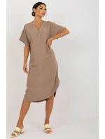 Šaty košilového střihu s krátkými rukávy a výstřihem do V. Rozparky na jedné straně.