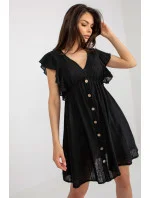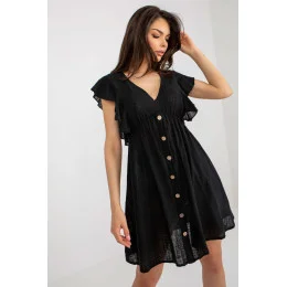 Letní šaty s ozdobnými knoflíky, krátkými volánovými rukávy a srdíčkovým výstřihem.