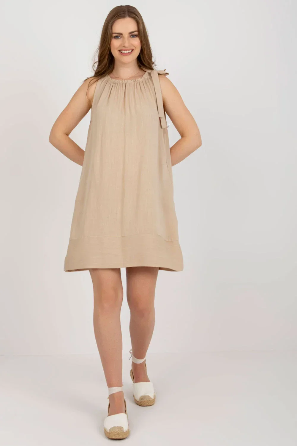 Volné letní šaty se zavazováním na ramínka. Návrh ideální pro mnoho příležitostí.