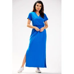 Maxi šaty s krátkými rukávy a srdíčkovým výstřihem. Maxi délka vám umožní opticky zeštíhlit siluetu a zdůraznit vaše přednosti. Navrženo a ušito v Polsku.