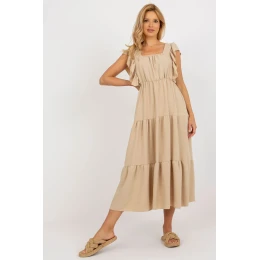 Dlouhé letní šaty volného střihu, bez rukávů a se čtvercovým výstřihem. Návrh ideální pro mnoho příležitostí.