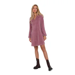 Velurové šaty s dlouhými rukávy a výstřihem do V. Šaty mají trapézový střih, bez podšívky. Navrženo a ušito v Polsku.