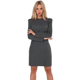 Šaty s dlouhými úzkými rukávy a modelujícím prošíváním na přední straně. Šaty jsou bez podšívky a zapínají se na krytý zip. Ramenní švy s všitými vysokými polštářky. Navrženo a ušito v Polsku.