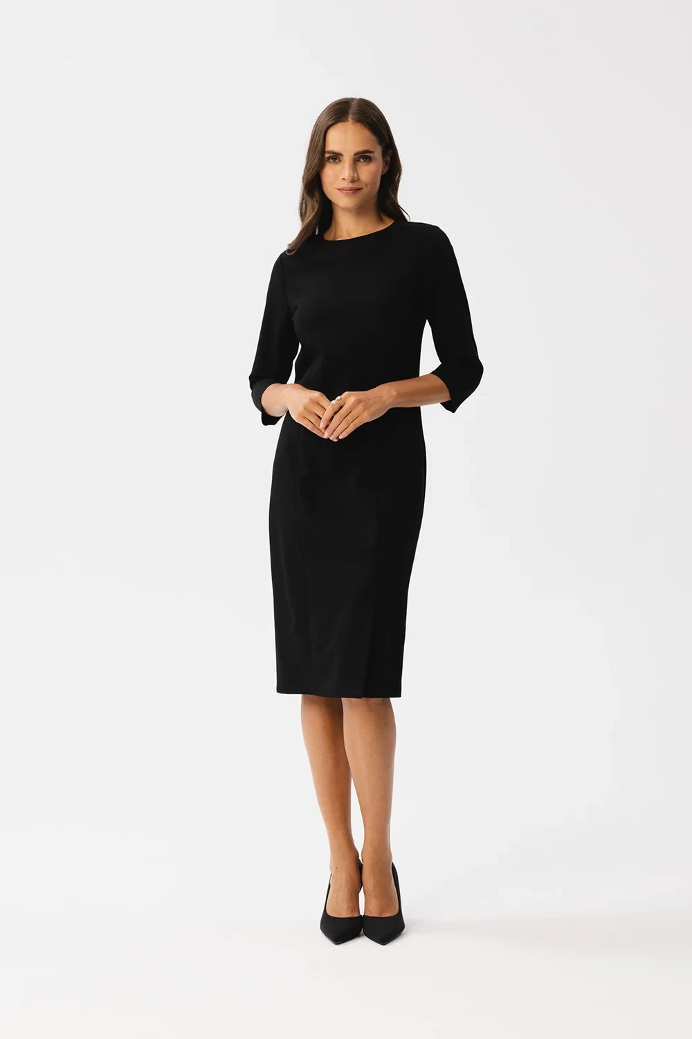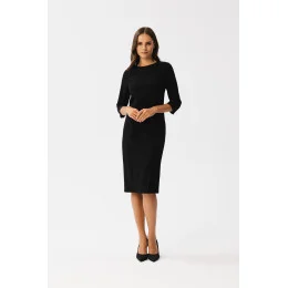 Představujeme vám okouzlující šaty tužkového střihu, které kombinují klasický šarm s moderním stylem. Jsou vyrobeny z vysoce kvalitní látky, takže jsou nejen elegantní, ale také pohodlné. Kulatý výstřih jim dodává na jemnosti. Modelující prošití procházející středem šatů zvýrazňuje siluetu a dodává eleganci. Rukávy ve 3/4 délce jsou univerzální a módní. Délka šatů sahá nad kolena, což jim dává univerzálnost pro různé příležitosti. Na přední straně a na boku je rozparek, který šatům dodává charakter. Skrytý zip na zádech usnadňuje oblékání. Šaty nemají podšívku, takže jsou lehké a pohodlné na nošení. Tyto šaty byly navrženy a ušity v Polsku, což svědčí o jejich kvalitě a jedinečnosti. Jsou ideální volbou pro mnoho příležitostí, od formálních setkání až po uvolněnější akce, a dodají vám sebevědomí a styl.
