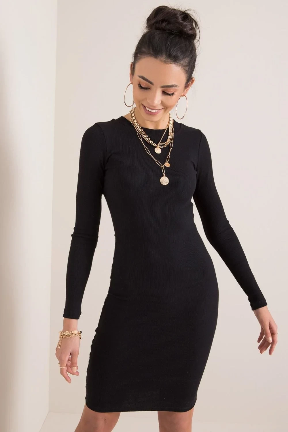 Šaty tužkového střihu s dlouhými rukávy a kulatým výstřihem. Ideální pro každodenní nošení i mimo něj.
