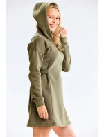 Šaty s kapucí a dlouhými rukávy. Nastavitelná šířka na bocích. Perfektní návrh na každý den a nejen na něj. Navrženo a ušito v Polsku.