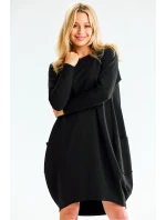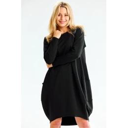 Volné midi teplákové šaty s dlouhými rukávy. Kapsy na bocích. Navrženo a ušito v Polsku.
