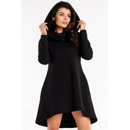 Volné trapézové šaty s dlouhými rukávy a kapucí, s kapsami v bočních švech. Perfektní návrh na každodenní nošení.