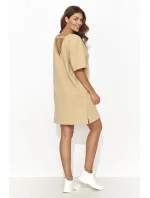 Moderní a stylové krátké teplákové šaty, které kombinují pohodlí s módním designem. Na zádech mají nepřehlédnutelný průstřih pro jemný smyslný nádech, který je zdoben zlatým bižuterním třpytem. Šaty jsou vpředu postavené a ve spodní části mají jemné rozparky, které působí lehce a ležérně. Mají velmi ležérní střih, takže jsou ideální volbou pro neformální a aktivní setkání s přáteli. V závislosti na doplňcích je stylizujte přesně tak, jak se vám to nejvíce líbí!